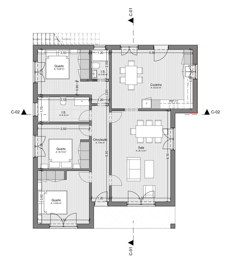 O rés do chão, com tipologia T3, dispõe de áreas amplas e luminosas, ideais para uma vivência familiar moderna e acolhedora. Cada divisão foi pensada para privilegiar o bem-estar e a ligação com o exterior.